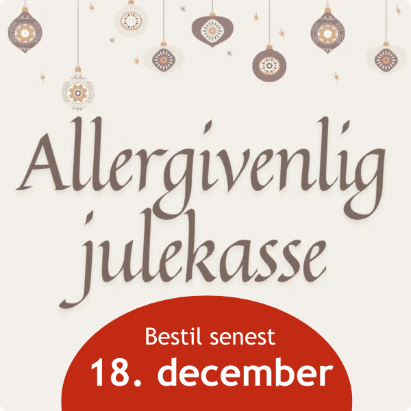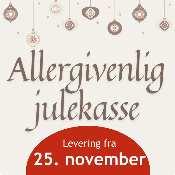 En allergivenlig julemåltidskasse der indeholder 4 velsmagende måltider der emmer af jul, en mælkefri juledessert og en lille jule-overraskelse.